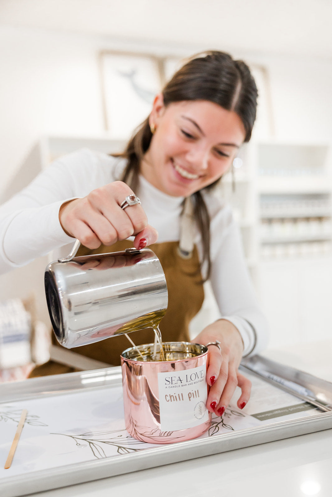 Each visit begins with choosing from over 100 clean, coastal-inspired fragrances. Our Certified Scent Stylists will guide you through blending your favorites to create a one-of-a-kind candle that reflects your style, mood, or memory. From fresh citrus to cozy vanilla, seaside air to crackling firewood, the possibilities are endless.